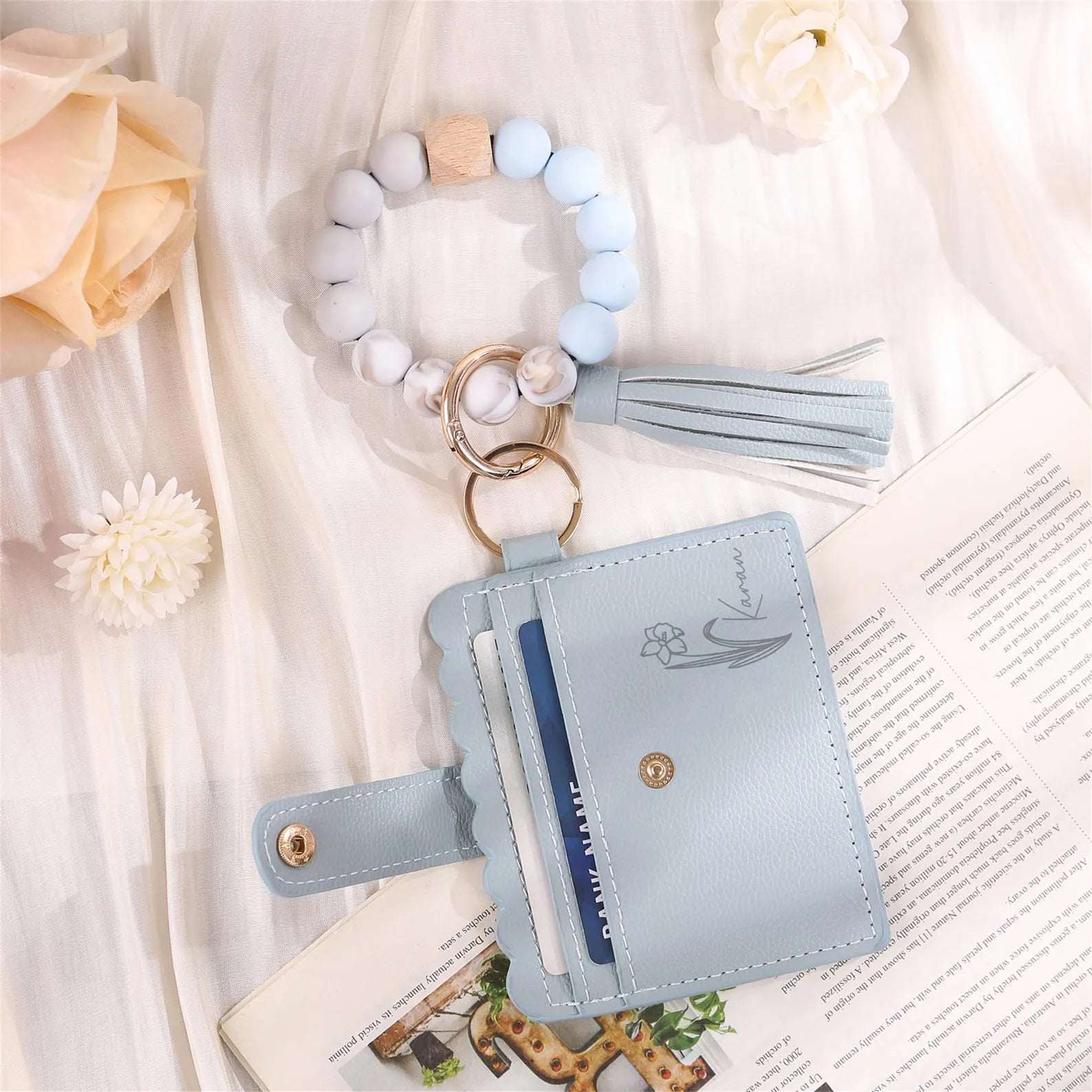 Tragen Sie Ihre wichtigsten Dinge mit einem Hauch von persönlichem Charme bei sich. Dieses vielseitige Accessoire vereint ein praktisches Kartenetui mit einem eleganten Perlenarmband und ermöglicht es Ihnen, Ihren individuellen Stil überall zum Ausdruck zu bringen.