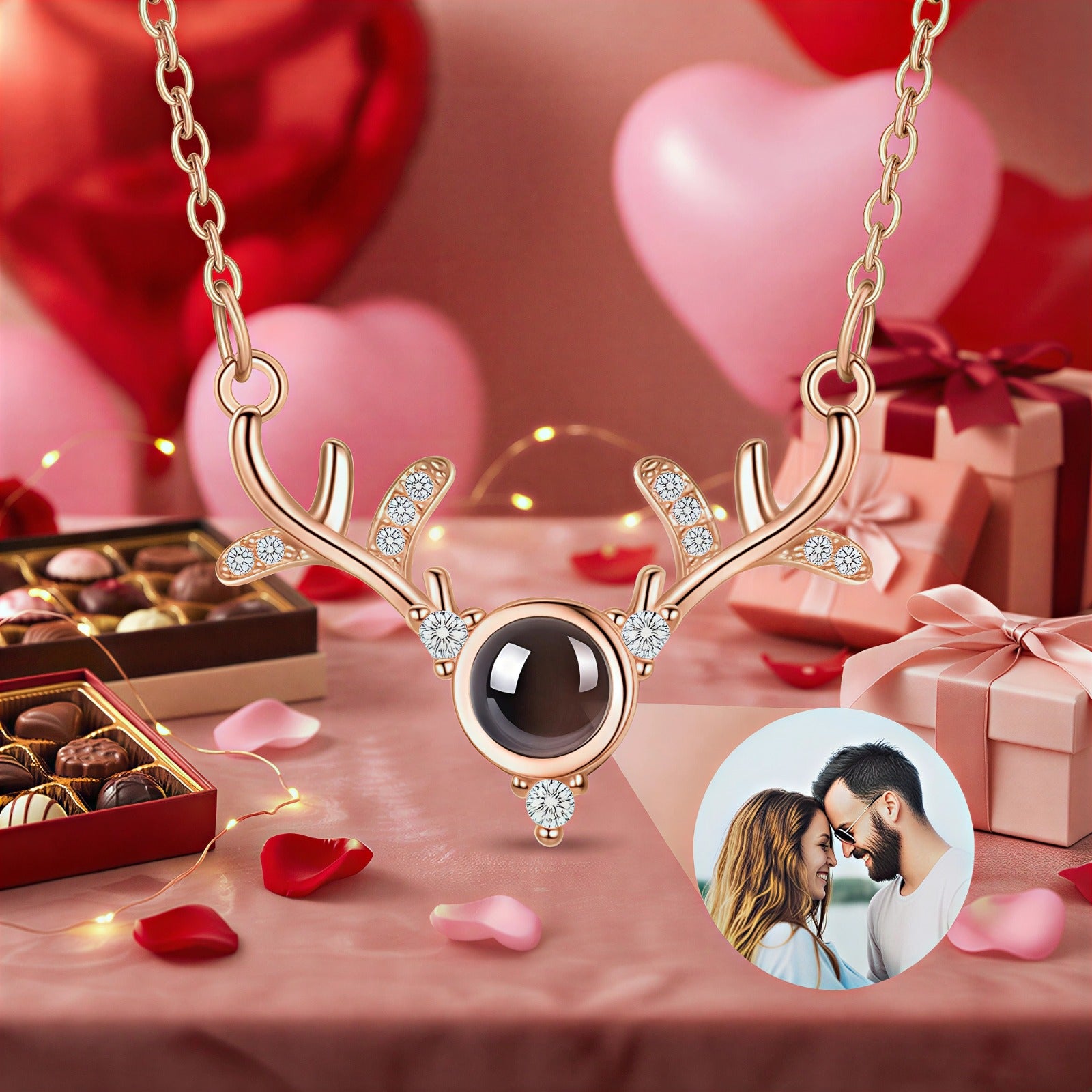 Medaillon-Halskette mit Hirschgeweih und Foto – Personalisierter Erinnerungsschmuck mit Foto im Inneren
