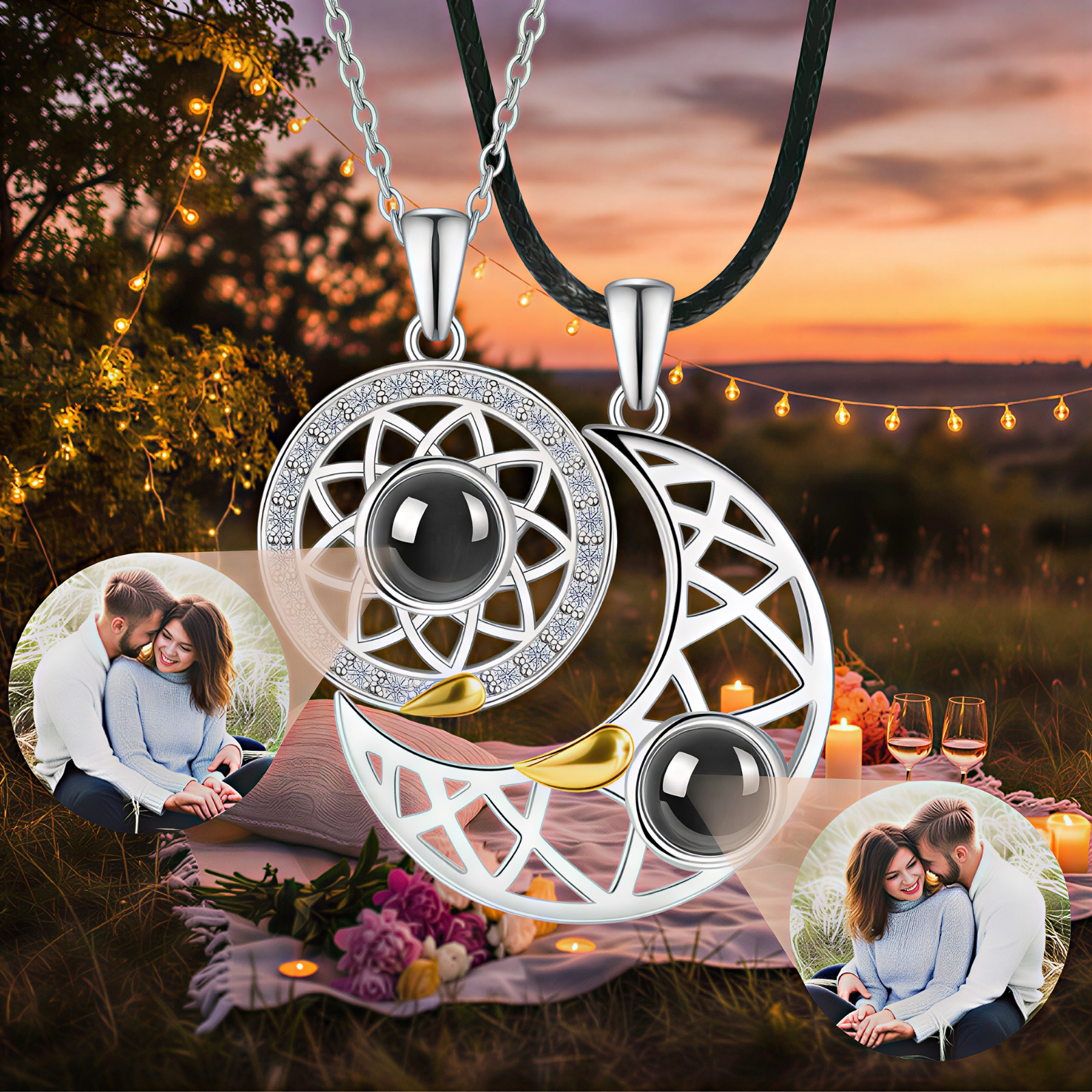 Partner-Halskettenset „Sonne und Mond“ – Projektionsanhänger mit Diamant- und Goldakzenten