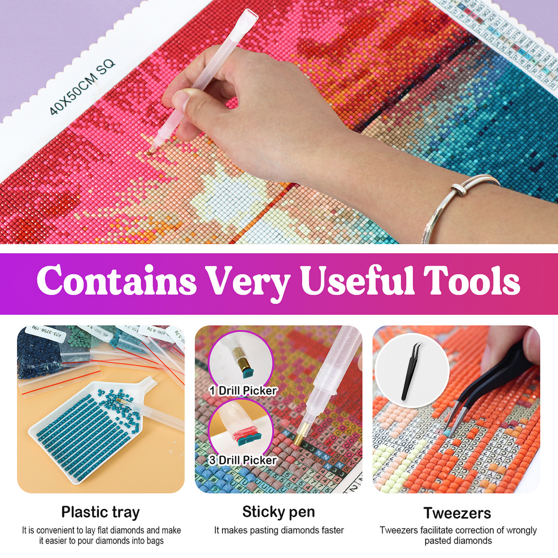 - Effet diamant résine : Une couche de résine transparente comme du cristal, semblable à un bijou, est coulée sur la toile. En durcissant, elle crée une profondeur tridimensionnelle fascinante et une finition brillante et permanente qui magnifie les couleurs et ajoute un éclat incroyable.
