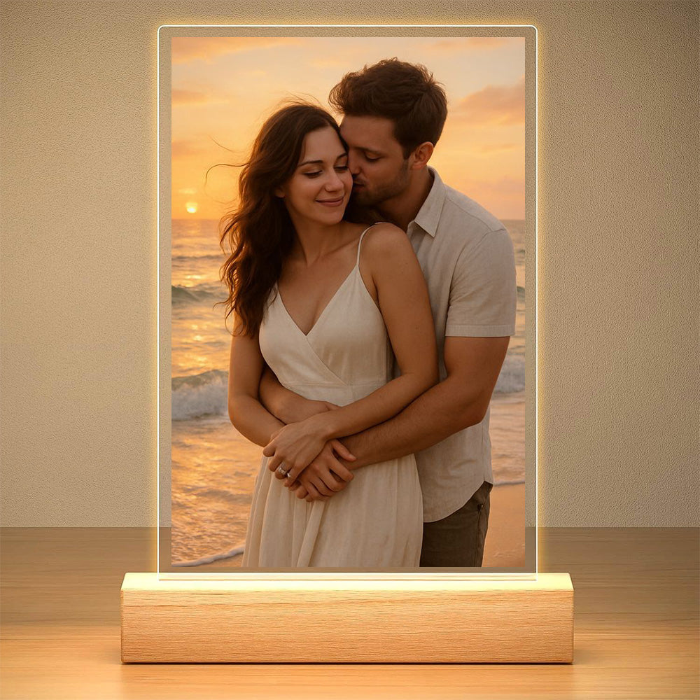 Illuminez vos souvenirs en musique. Cette veilleuse transforme une photo qui vous est chère et la bande-son idéale en un hommage lumineux, célébrant les liens qui ont façonné votre vie : amitiés, famille et moments marquants.