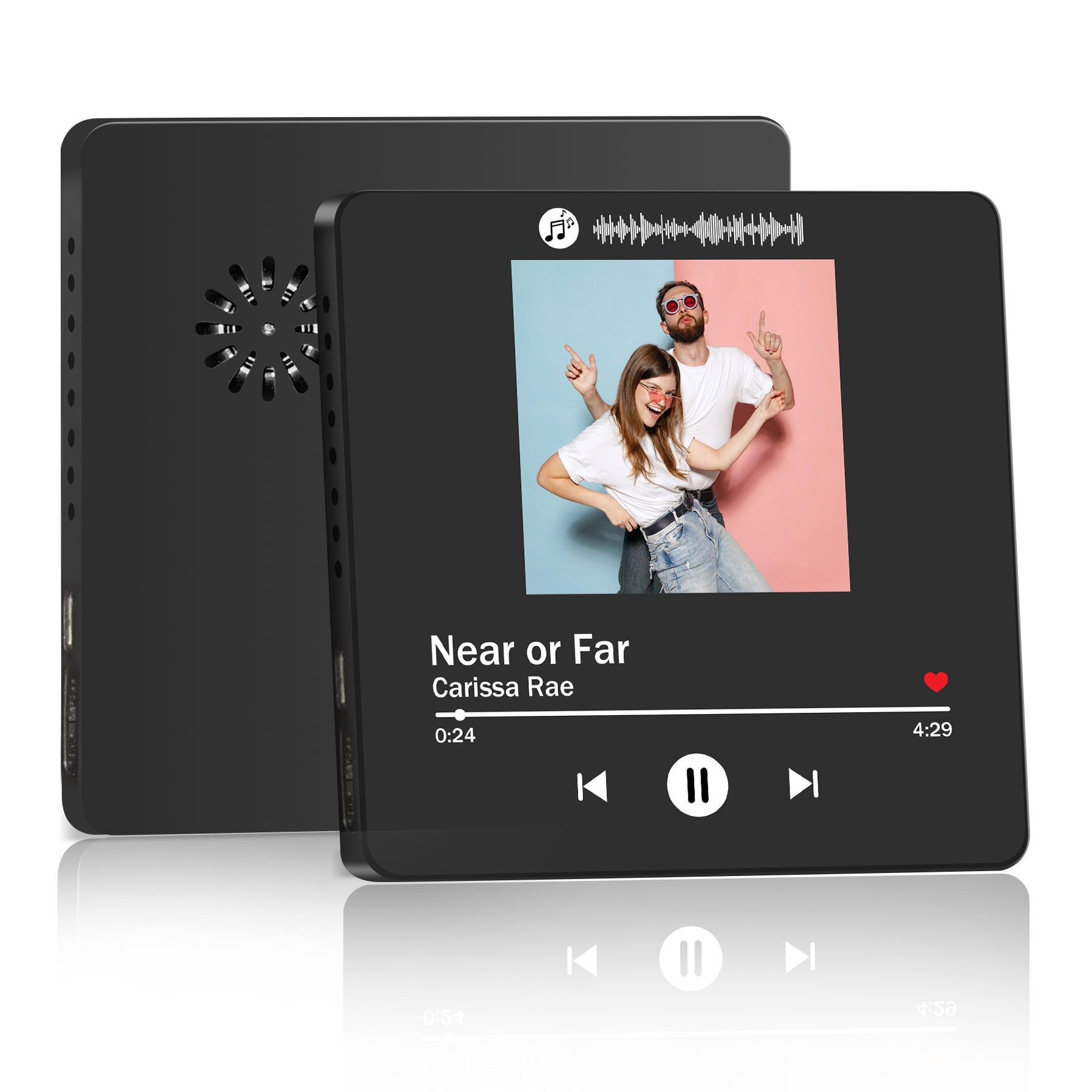 Transformez votre réfrigérateur en une galerie de souvenirs musicaux. Cet aimant musical innovant associe une photo préférée à un extrait de chanson ou à un enregistrement vocal qui vous est cher, faisant revivre un moment à chaque pression sur le bouton de lecture, comme l'illustre le touchant exemple « Near or Far ».