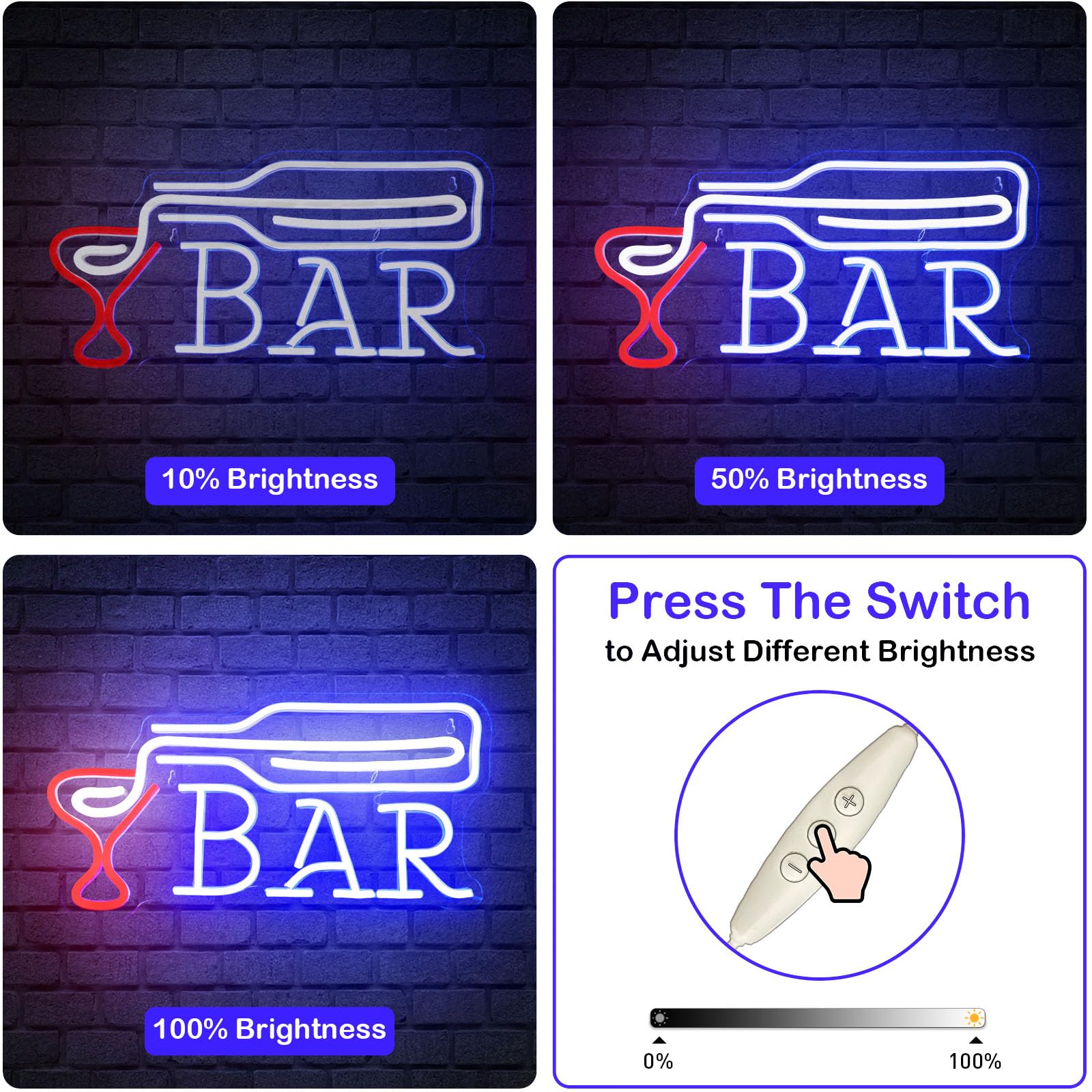 Capture the lively spirit of a classic bar with this eye-catching BAR neon sign. The design features a crisp white bottle elegantly pouring into a vibrant red martini glass, all underscored by the bold, glowing word “BAR”. It’s the perfect statement piece to transform any wall into a conversation-starting focal point.