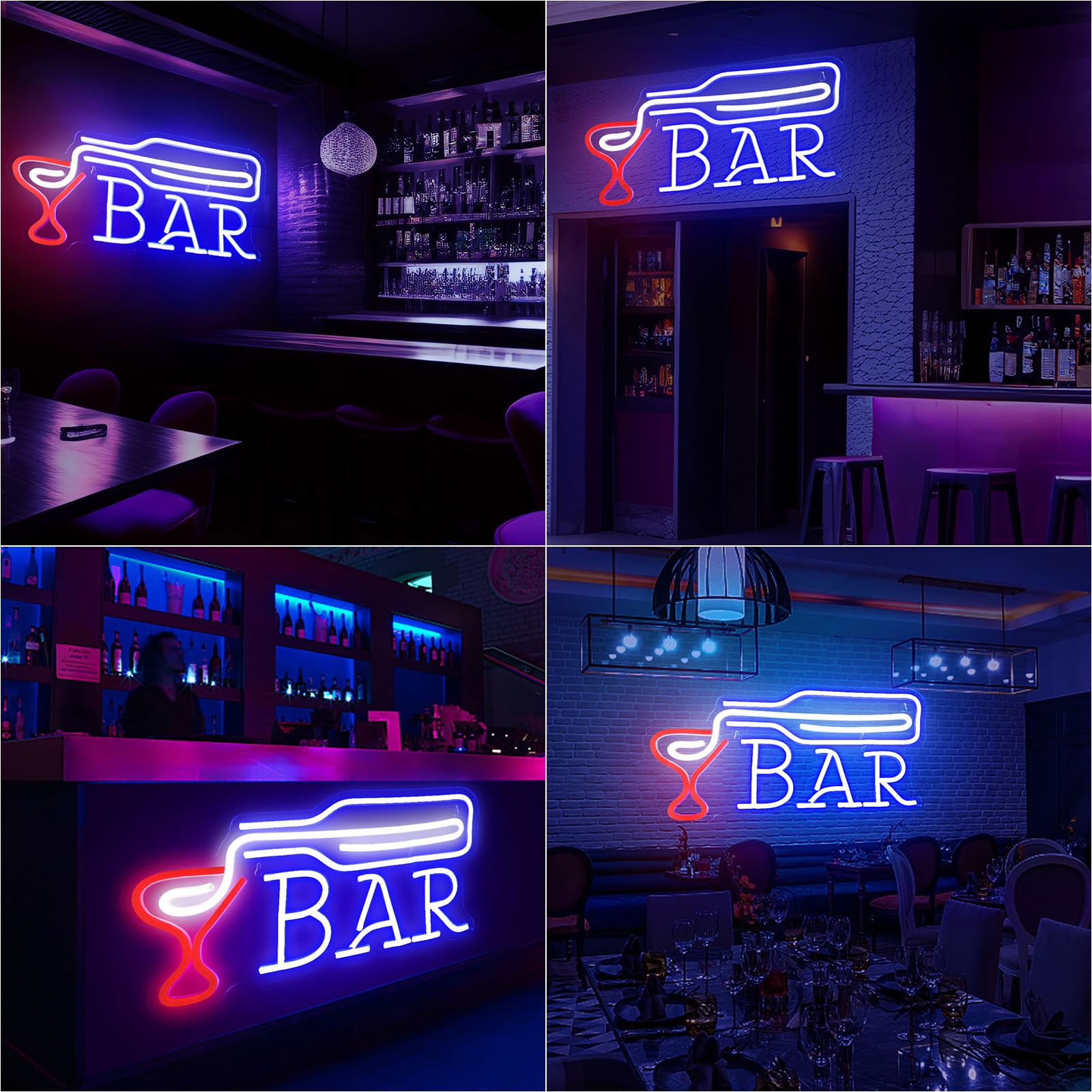 BAR Neon Sign - Blue Bottle Pouring into Red Glass LED Wall Light