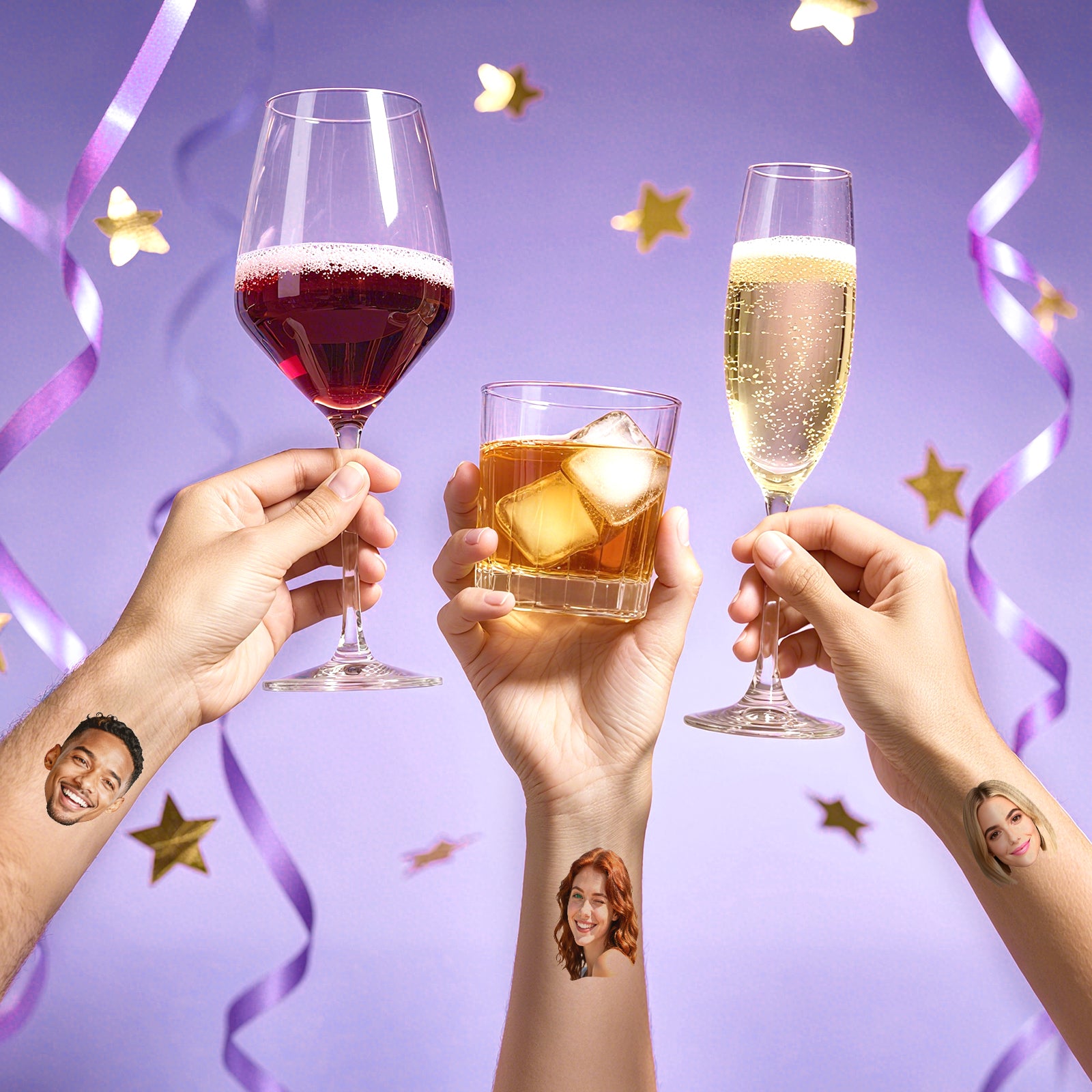 Make a bold, fun, and temporary statement with your own face! Our custom temporary tattoos let you transform any photo into a pack of 12 pre-cut, skin-safe stickers. Perfect for festivals, parties, pranks, or just celebrating your unique look.